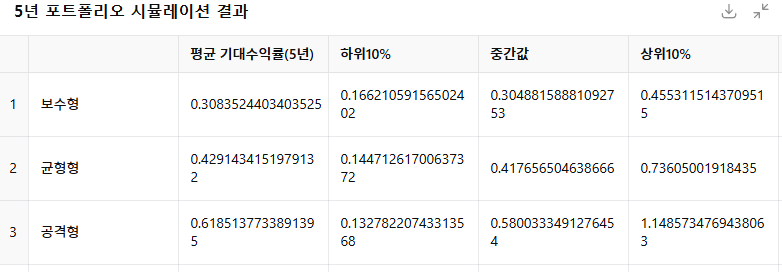 - 균형형은 모든 시나리오에서 “중간값” 역할 → 안정+성장 조화.